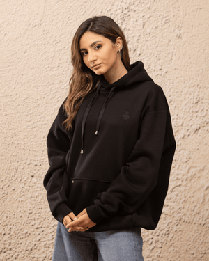 Sweat à capuche coupe oversize, à manches longues, confectionné en 100 % coton molletonné pour un confort optimal et une tenue durable.