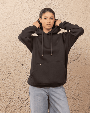 Sweat à capuche coupe oversize, à manches longues, confectionné en 100 % coton molletonné pour un confort optimal et une tenue durable.